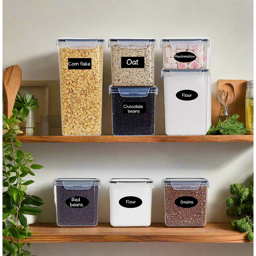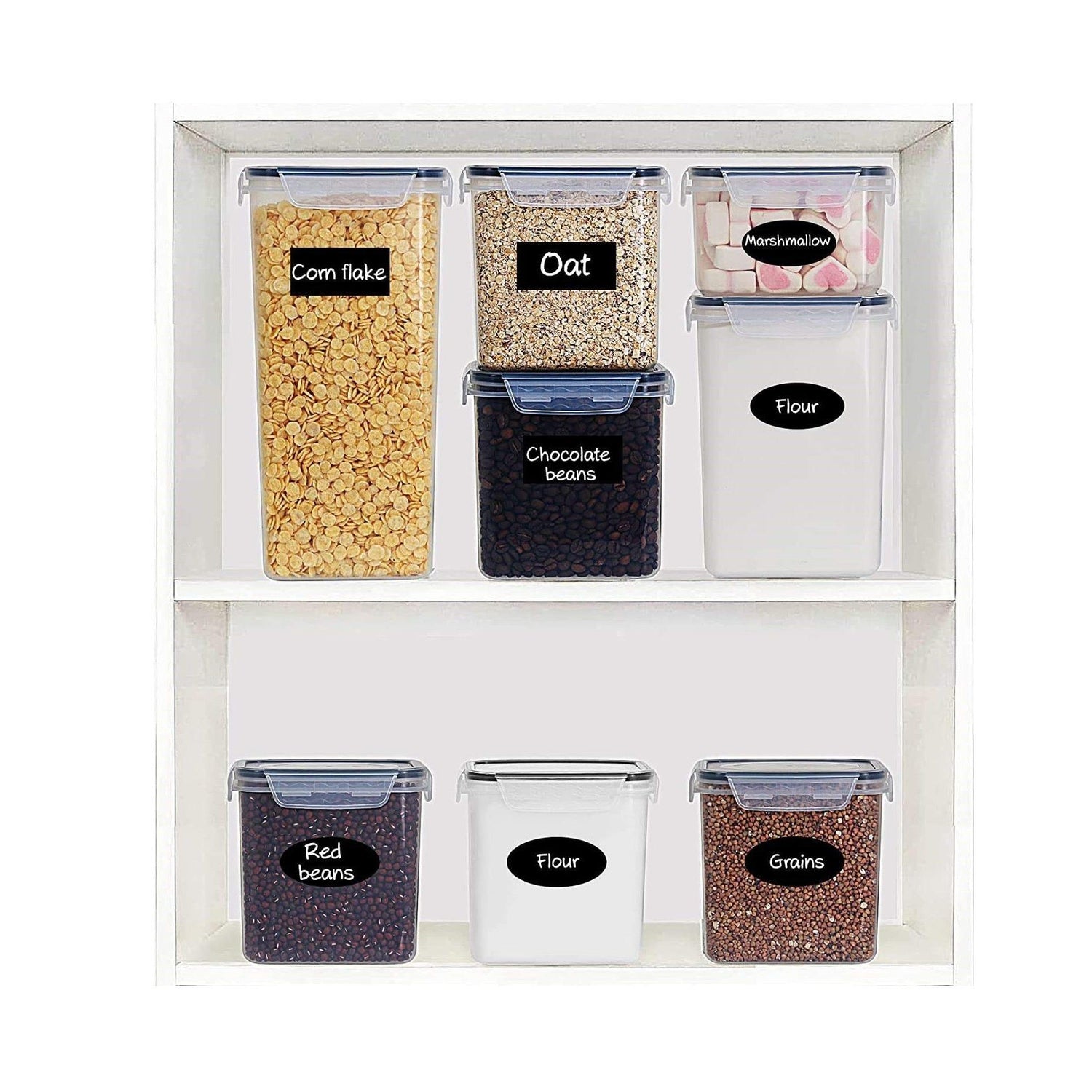 • Set Includes: Assorted airtight storage containers + measuring cups + labels + marker pen