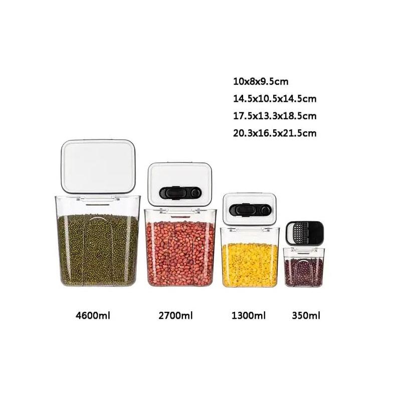 4pcs Airtight Storage Containers with Spoons | Durable Kitchen Storage Set | 4.6L, 2.7L, 1.3L, 0.35L | ABS + AS Material