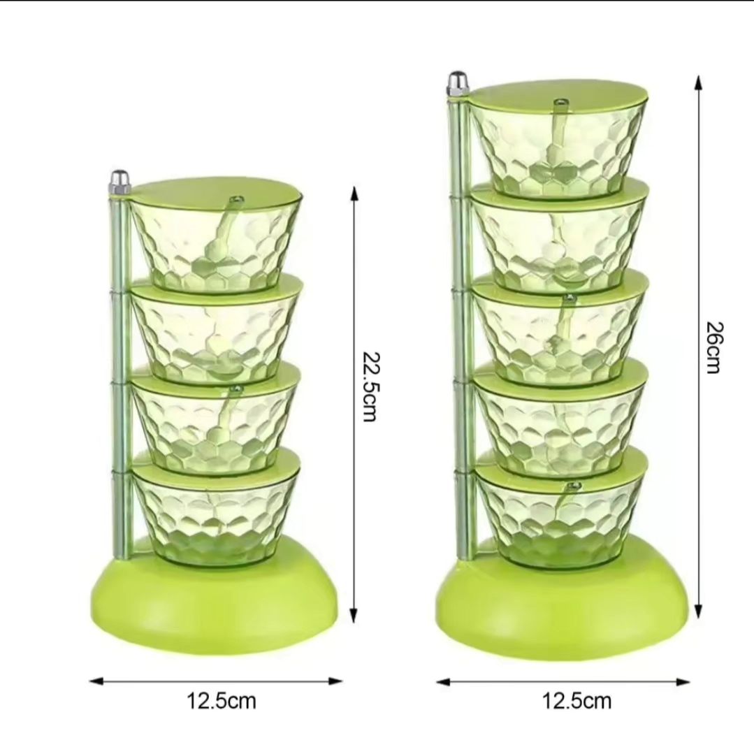 • Rotating Design: 360-degree rotation allows easy access to all five layers of spices.
