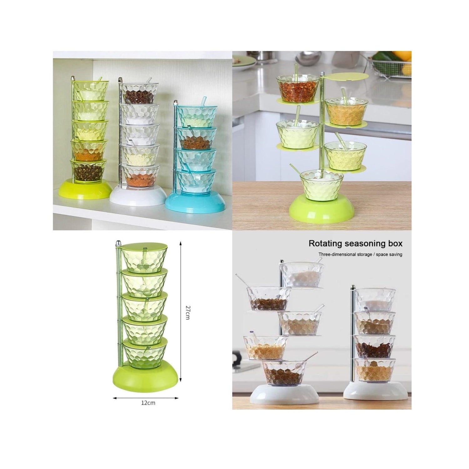 5 Layer Rotating Spice Seasoning Stand | Acrylic Spice Rack Organizer