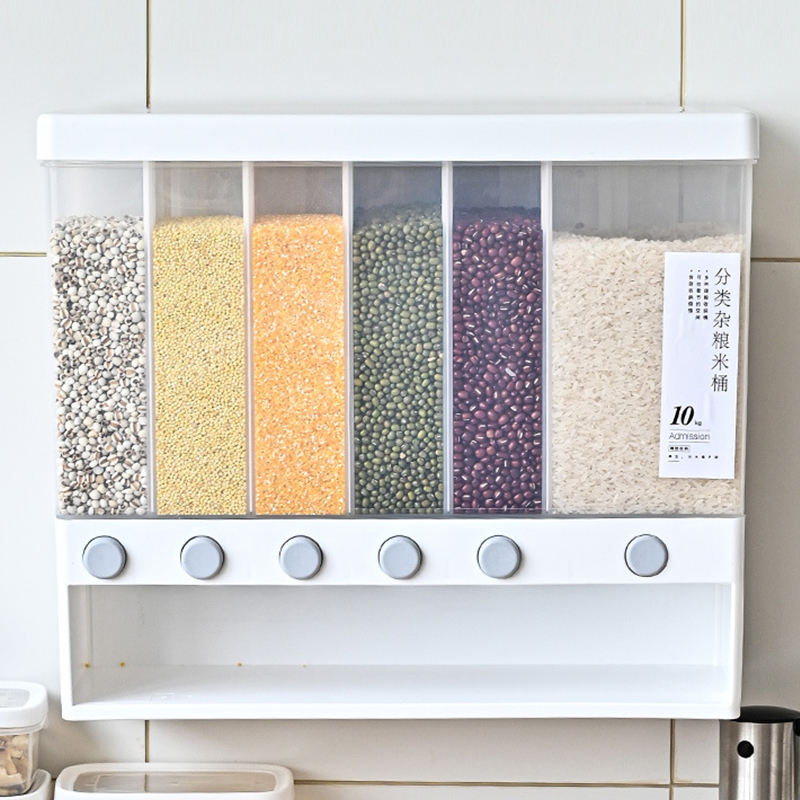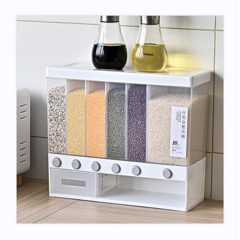 6 Compartment Cereal Dispenser Multi Grain Food Storage Container 10L Capacity.
