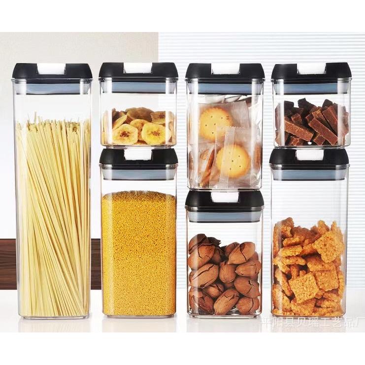 7 piece Transparent Acrylic Cereal Pantry Storage Containers Airtight & Stackable - Black is backordered and will ship as soon as it is back in stock.