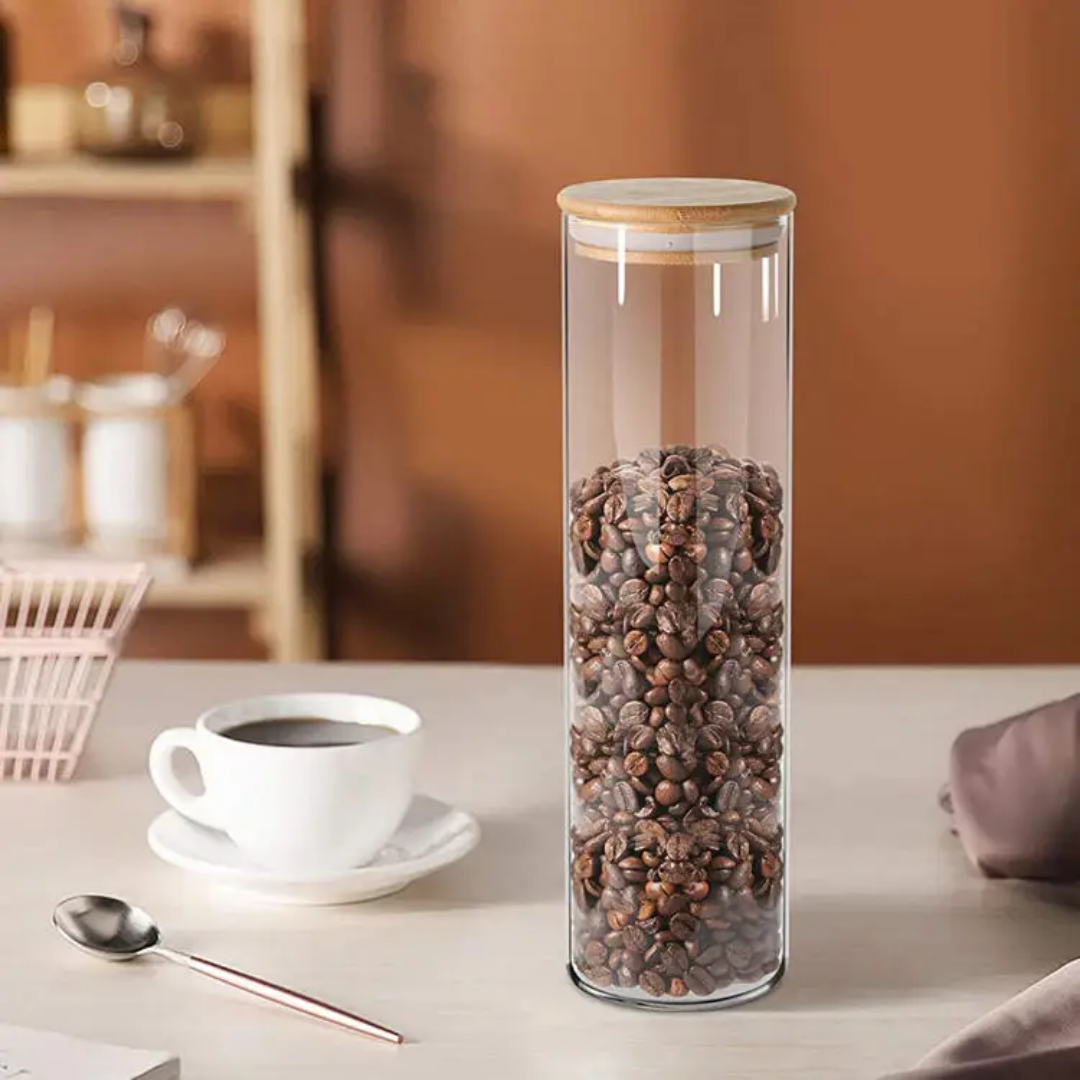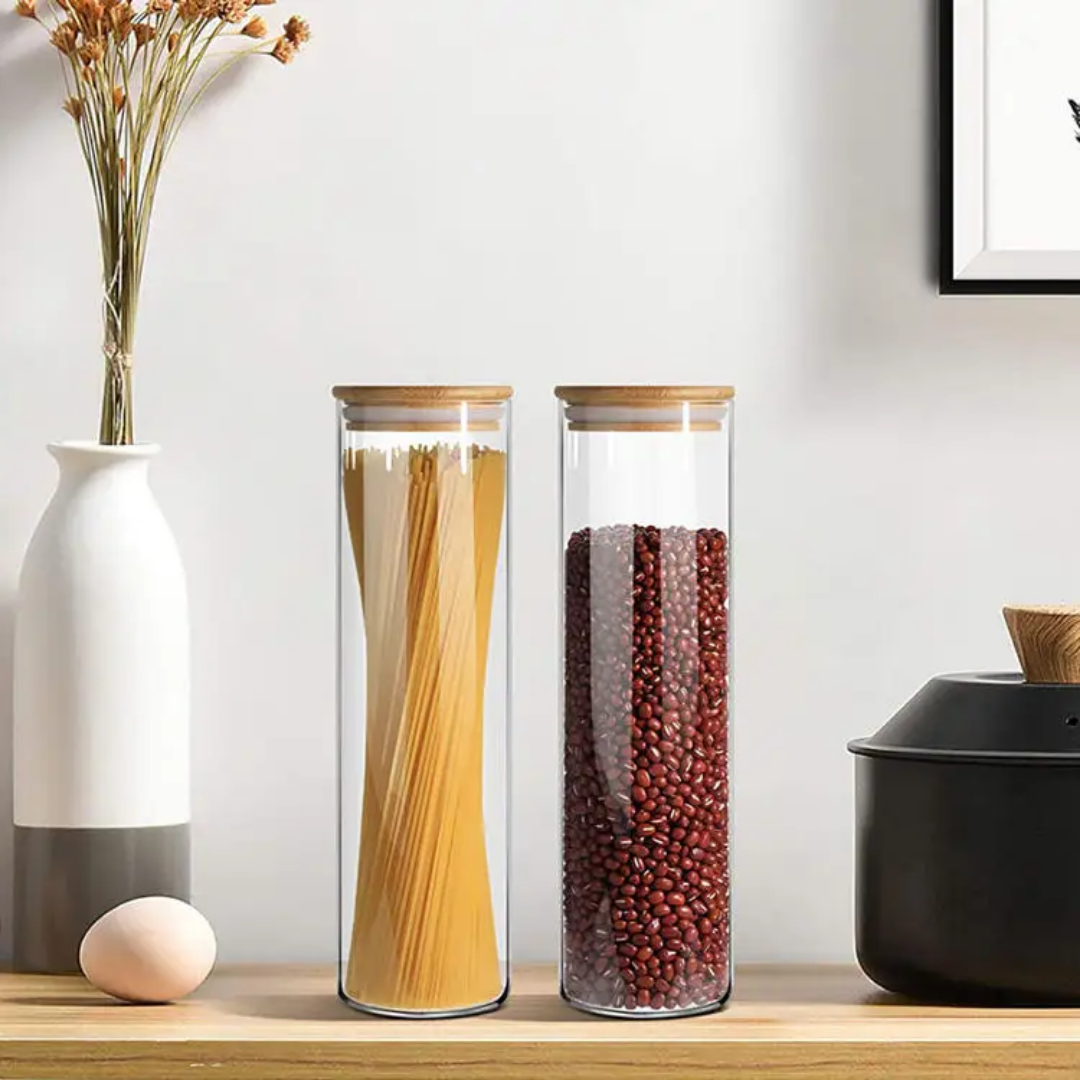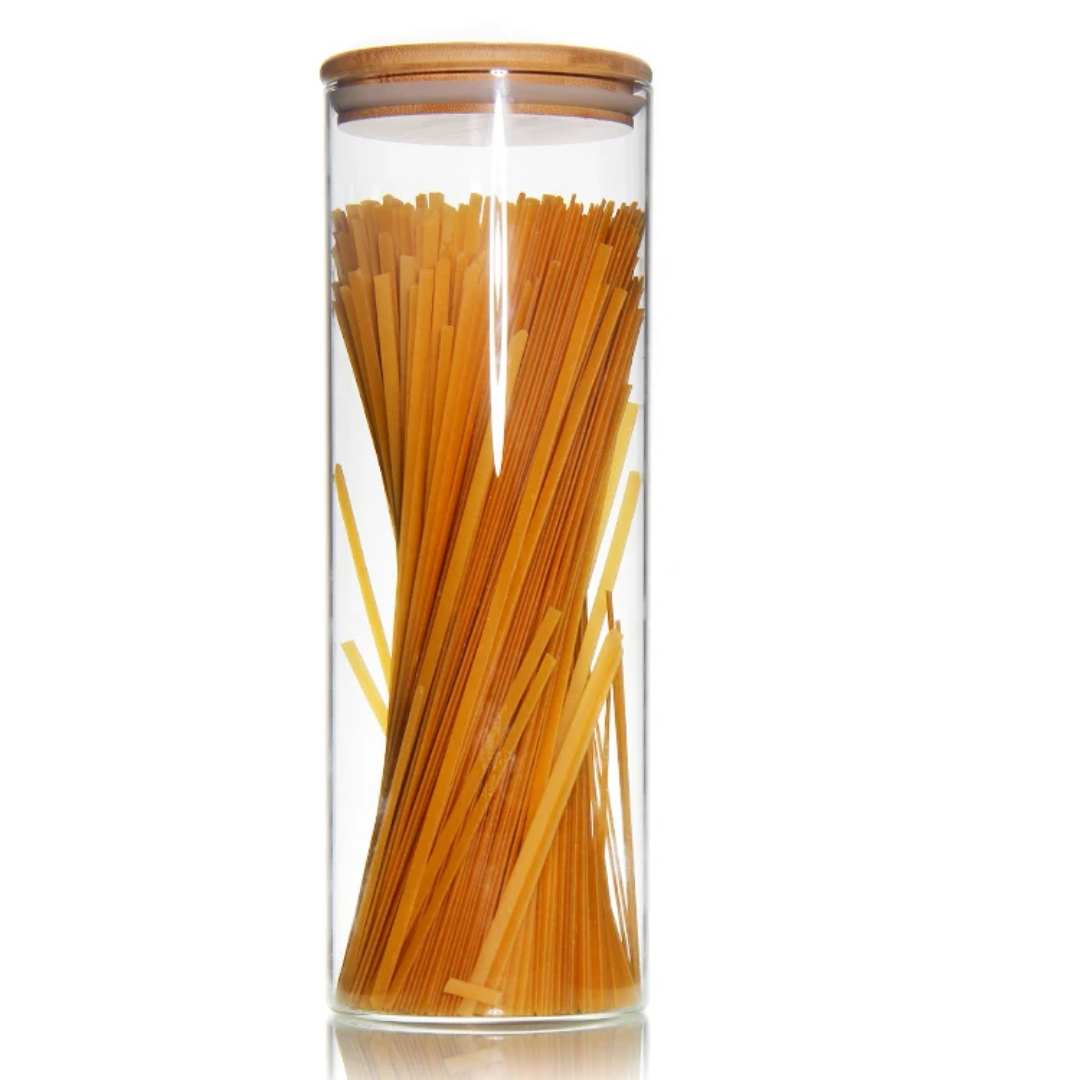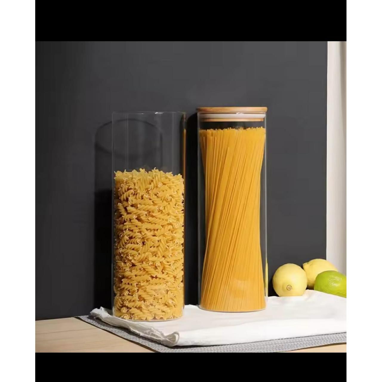Spaghetti & Cereal Storage Jars 2000ml Borosilicate Glass with Bamboo Lid