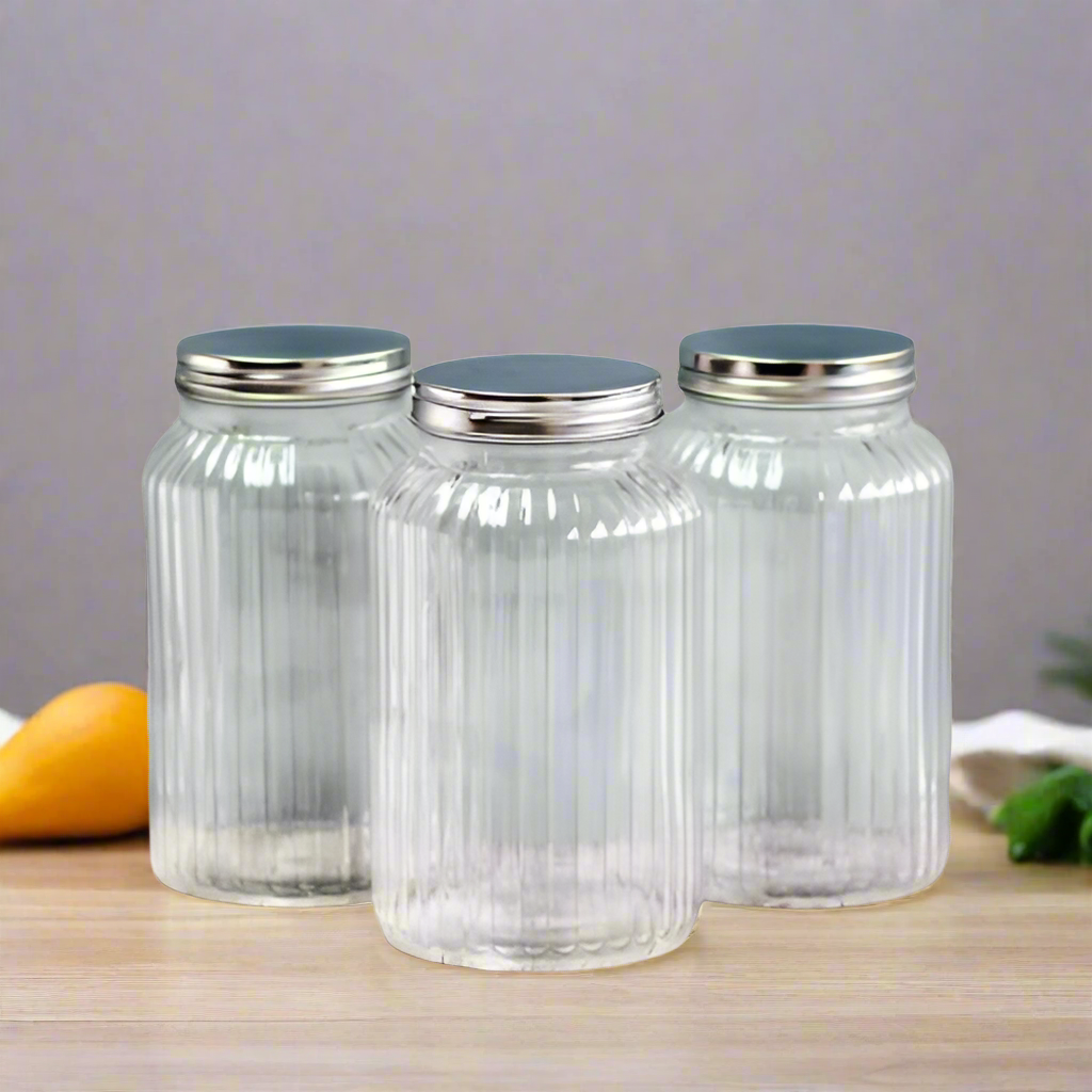 3pcs Set Clear Glass Storage Jars With Tin Lid 1000ml