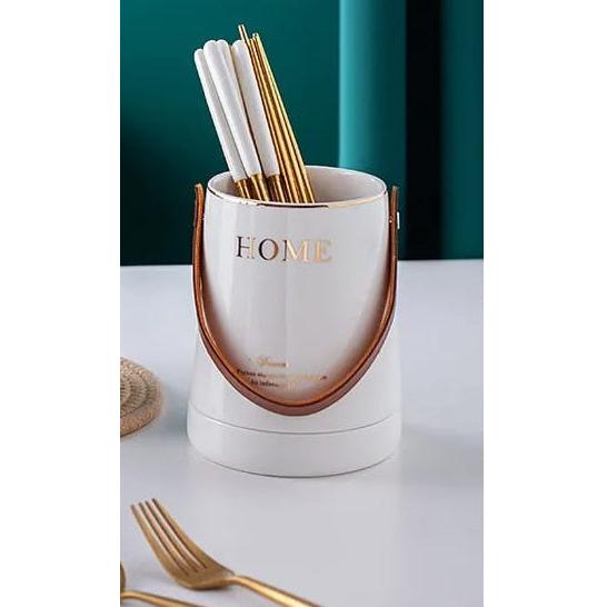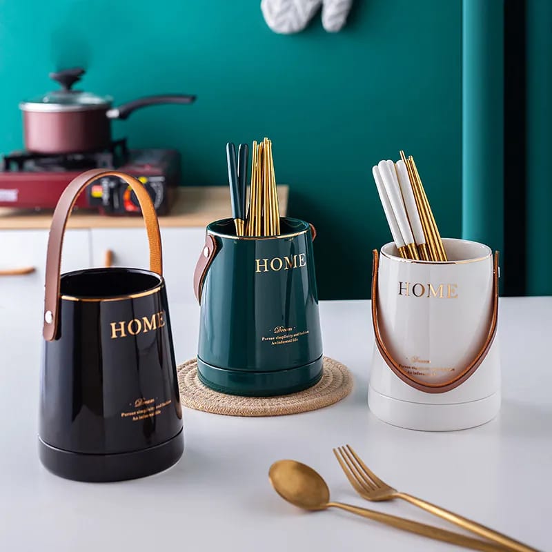 Enhance your kitchen with our Elegant Ceramic Cutlery and Multi-Purpose Holder. Made from high-quality ceramic, this classy holder includes a draining tray and features a perforated bottom for effective drying. Available in sophisticated white and green colors.