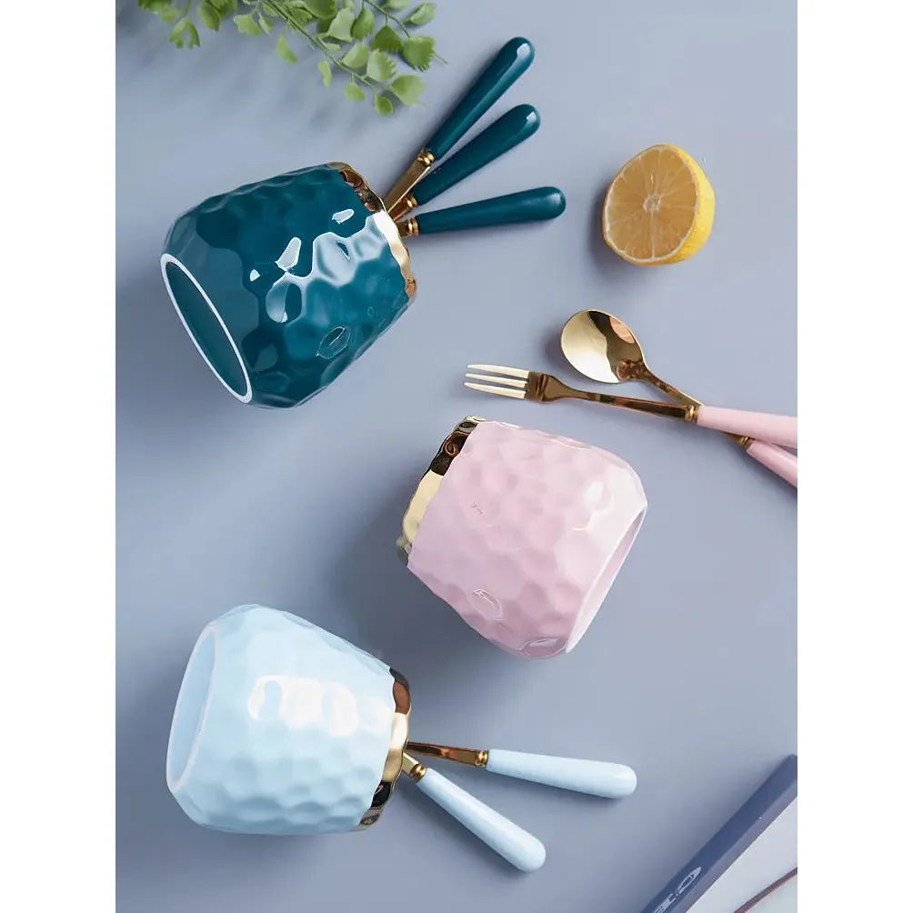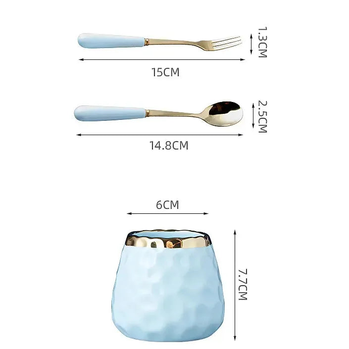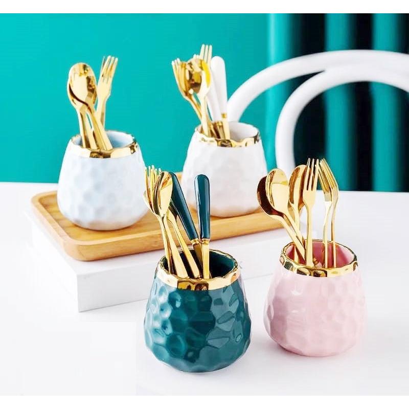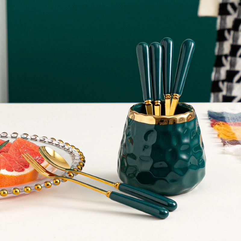 Nordic Light Luxury Fruit Fork and Spoon Ceramic Storage Tank Set | Green, White, Blue