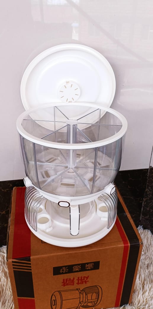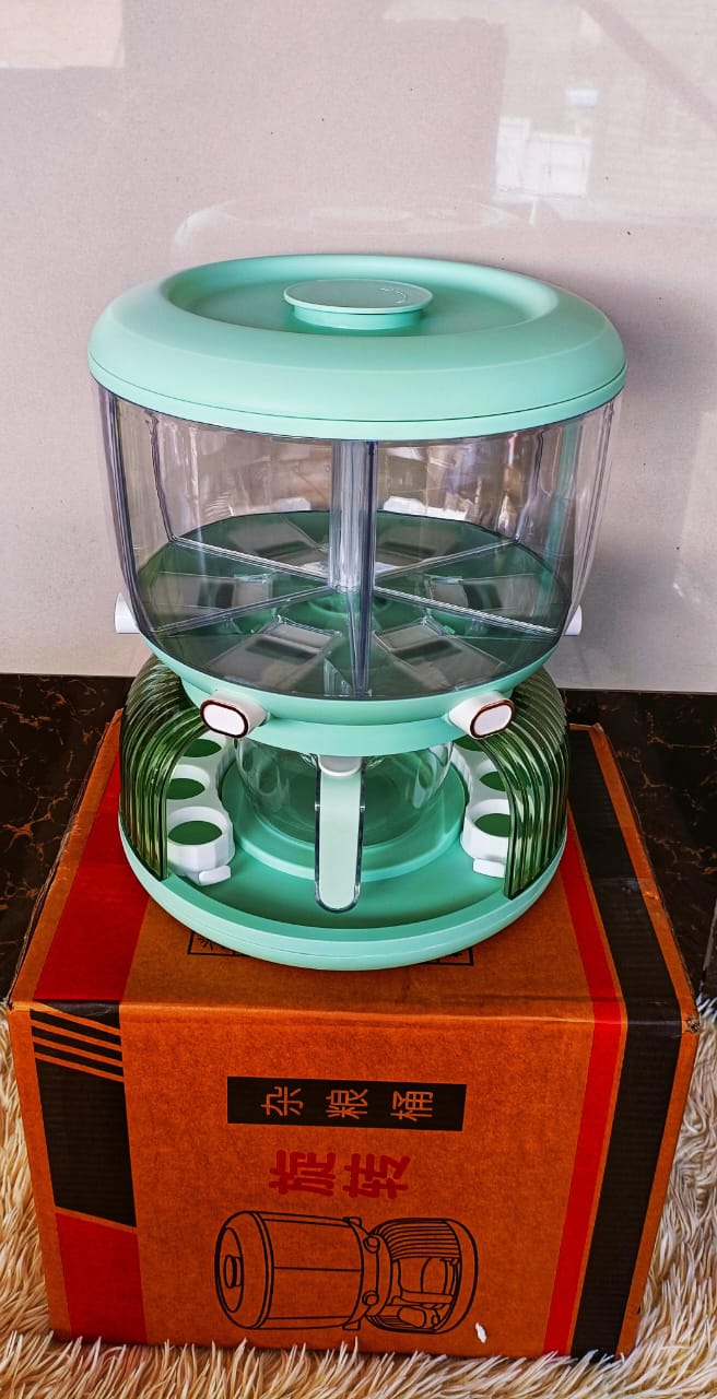 Simplify your kitchen organization with this Partitioned Cereals Dispenser. Designed with airtight rotating compartments, it stores up to 12kgs of cereals while keeping them fresh. The added egg holder conveniently holds up to 10 eggs, making this a perfect 2-in-1 kitchen storage solution.