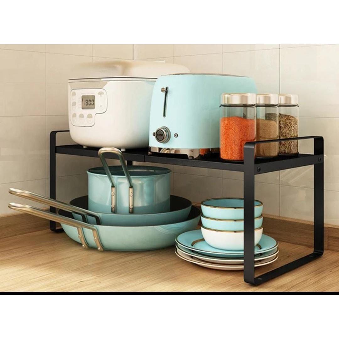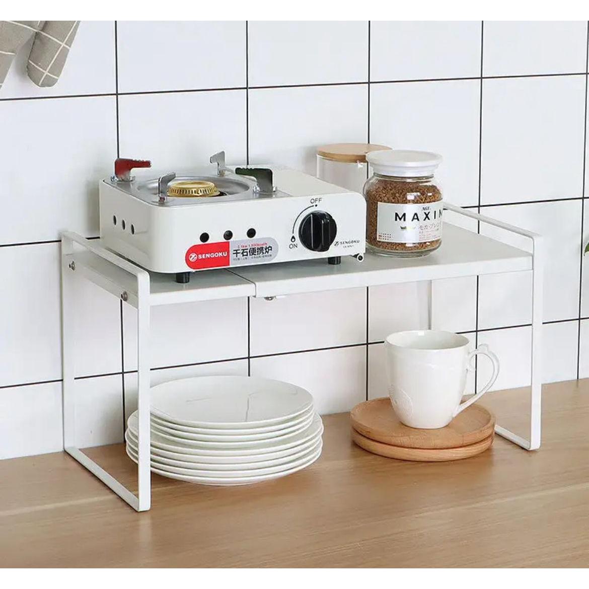 Maximize your kitchen space with this Retractable Cabinet Storage Rack. Designed to fit under shelves, this versatile organizer is perfect for storing spices, jars, and other kitchen essentials. Available in white and black, the sleek design blends seamlessly with any kitchen decor. The retractable feature allows for easy access to your items while keeping your kitchen neat and organized.