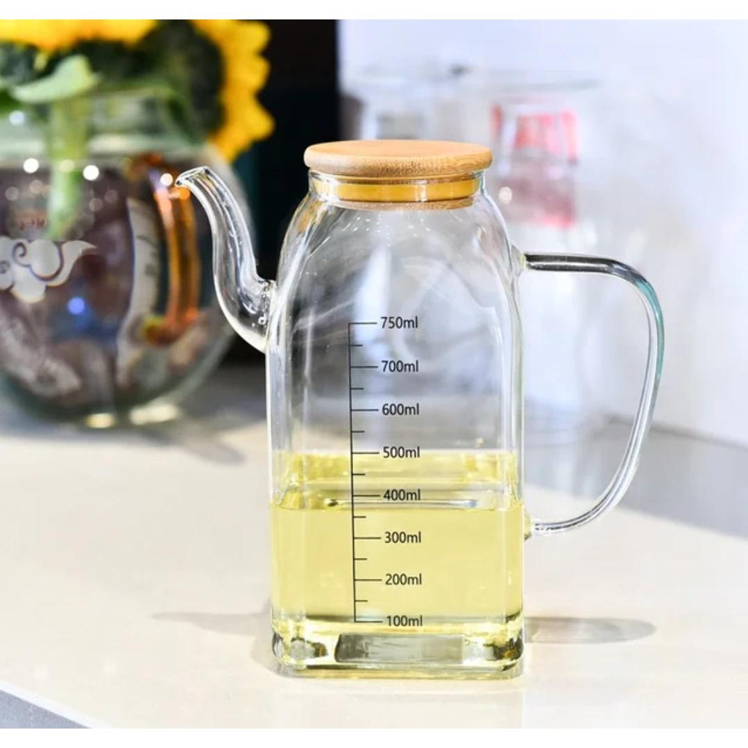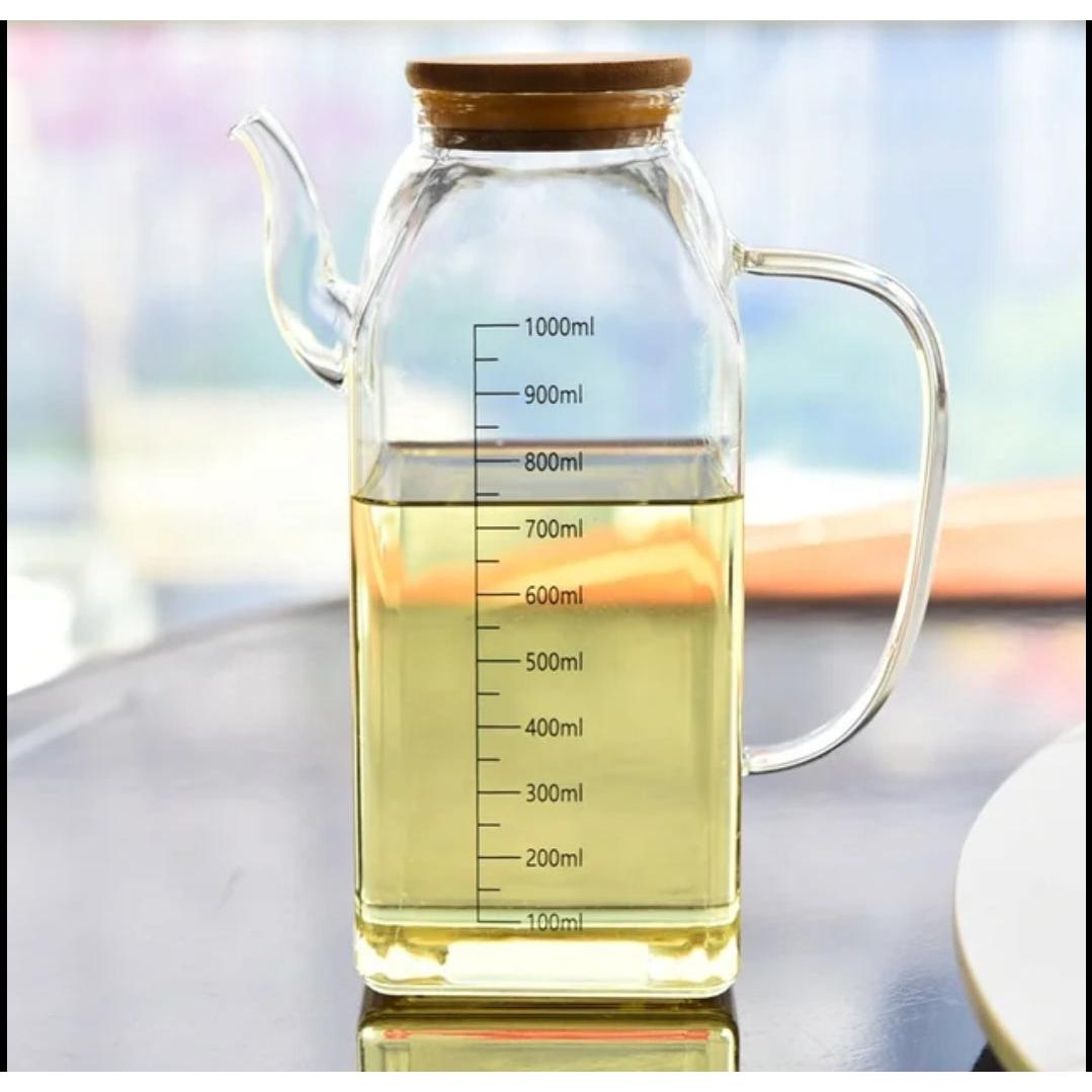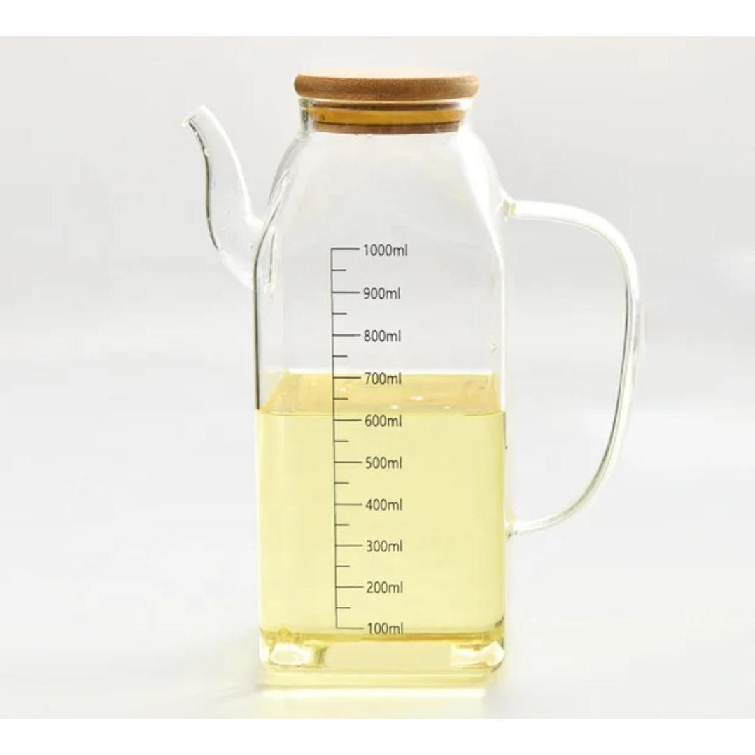 1000ml Square Shaped Oil Jar with Bamboo Lid Stylish and Functional Oil Dispenser for Kitchen