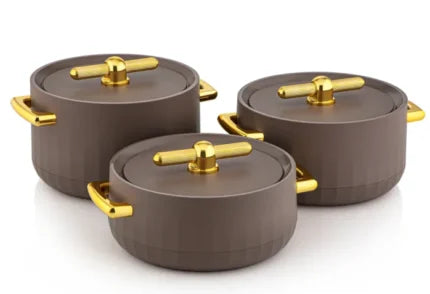 Serve in style with this 3-piece luxurious insulated hotpot set, designed with a smooth finish and high-quality build. Perfect for keeping meals hot and fresh while adding elegance to your dining experience.
