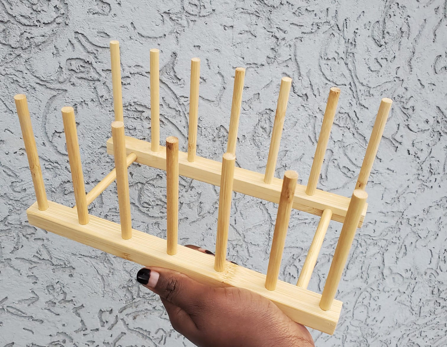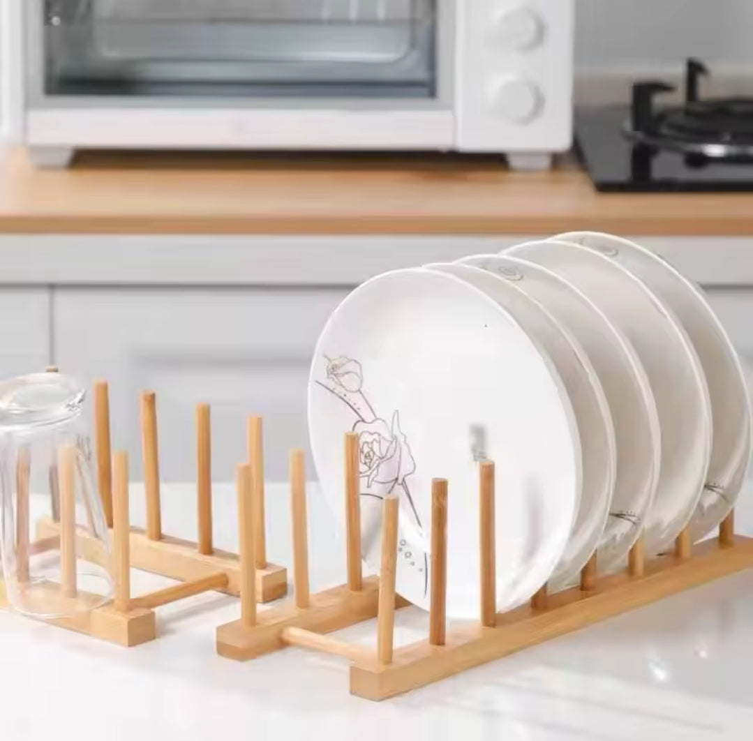 Organize and dry your plates in a natural, stylish way with this bamboo plate holder. Designed to hold up to 14 plates, it is waterproof and ideal for use in the kitchen or on the dining table to keep dishes neat and accessible.