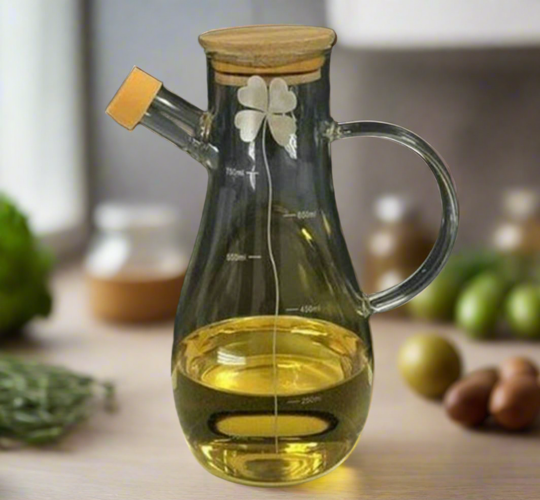 Add a touch of elegance to your kitchen with this high borosilicate oil jar, featuring a charming decorative flower design. Crafted for both function and beauty, it comes with an airtight lid to preserve freshness perfect for storing oils, vinegars, or infused liquids.