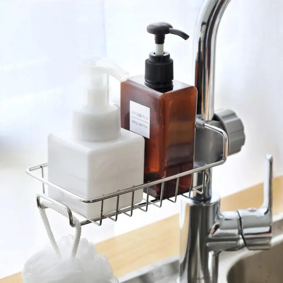 Perfect for keeping your sponges, soap, and towels organized, this stainless steel sink drain rack is ideal for maintaining a tidy kitchen sink area.