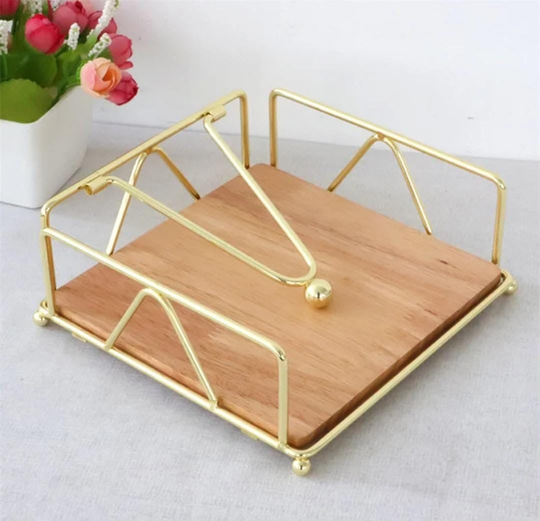 Luxury Serviette Holder with Bamboo Base – Black & Gold Napkin Dispenser