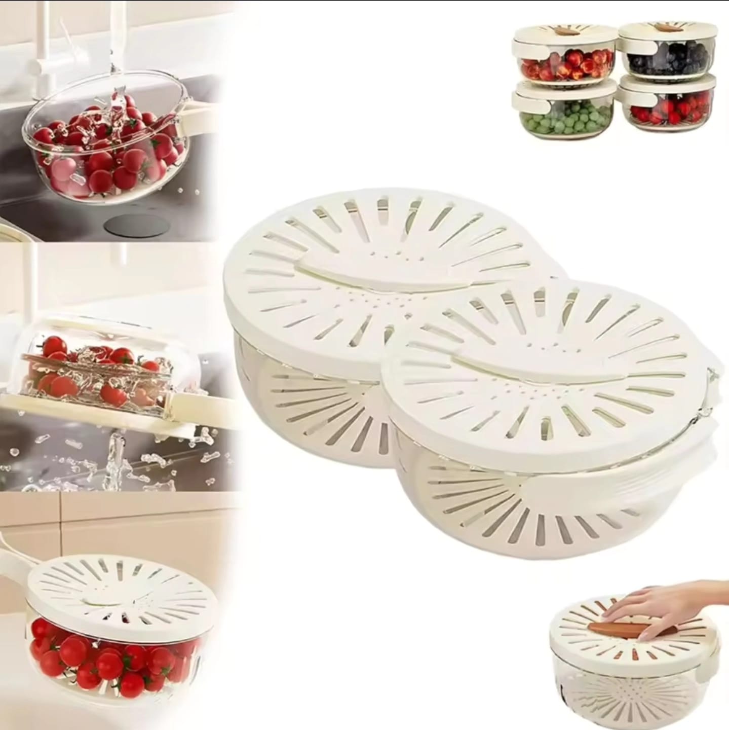Designed to simplify kitchen tasks, this all-in-one container serves as a colander, drainer, and storage box. Whether you're washing fruits and vegetables or storing leftovers, it keeps your food fresh and your prep area tidy.