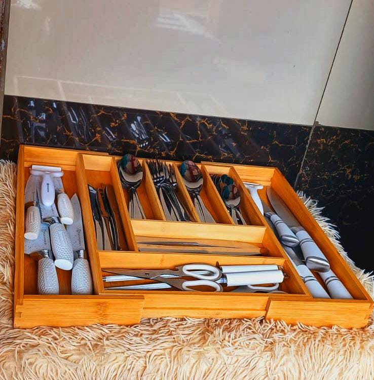 Multifunctional Bamboo Expandable Cutlery Organizer – Adjustable Kitchen Drawer Tray