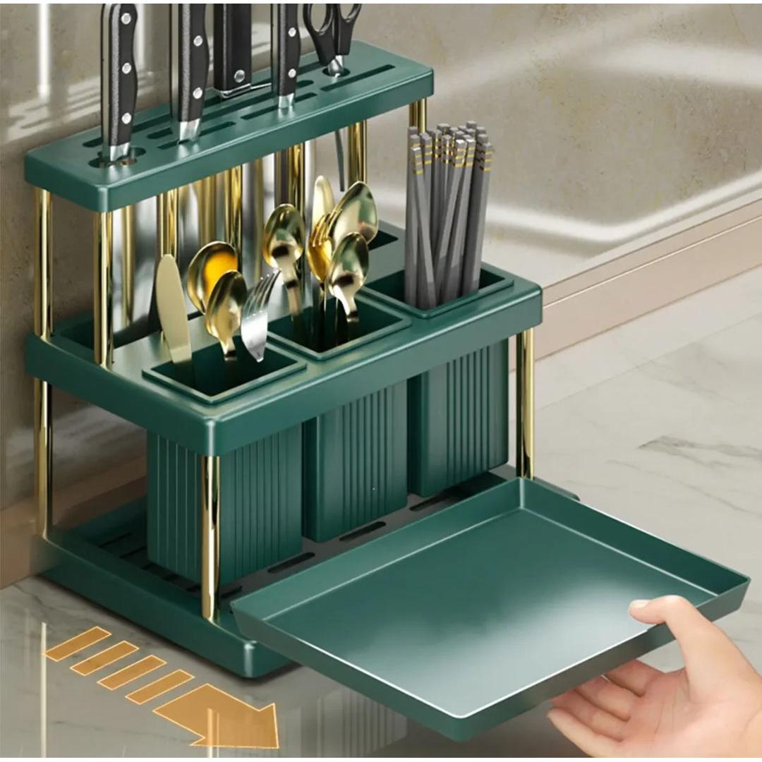 Multifunctional Kitchen Cutlery Holder Spoon Fork Chopstick Knives Storage Rack with Drain (25cm x 23cm x 16cm)