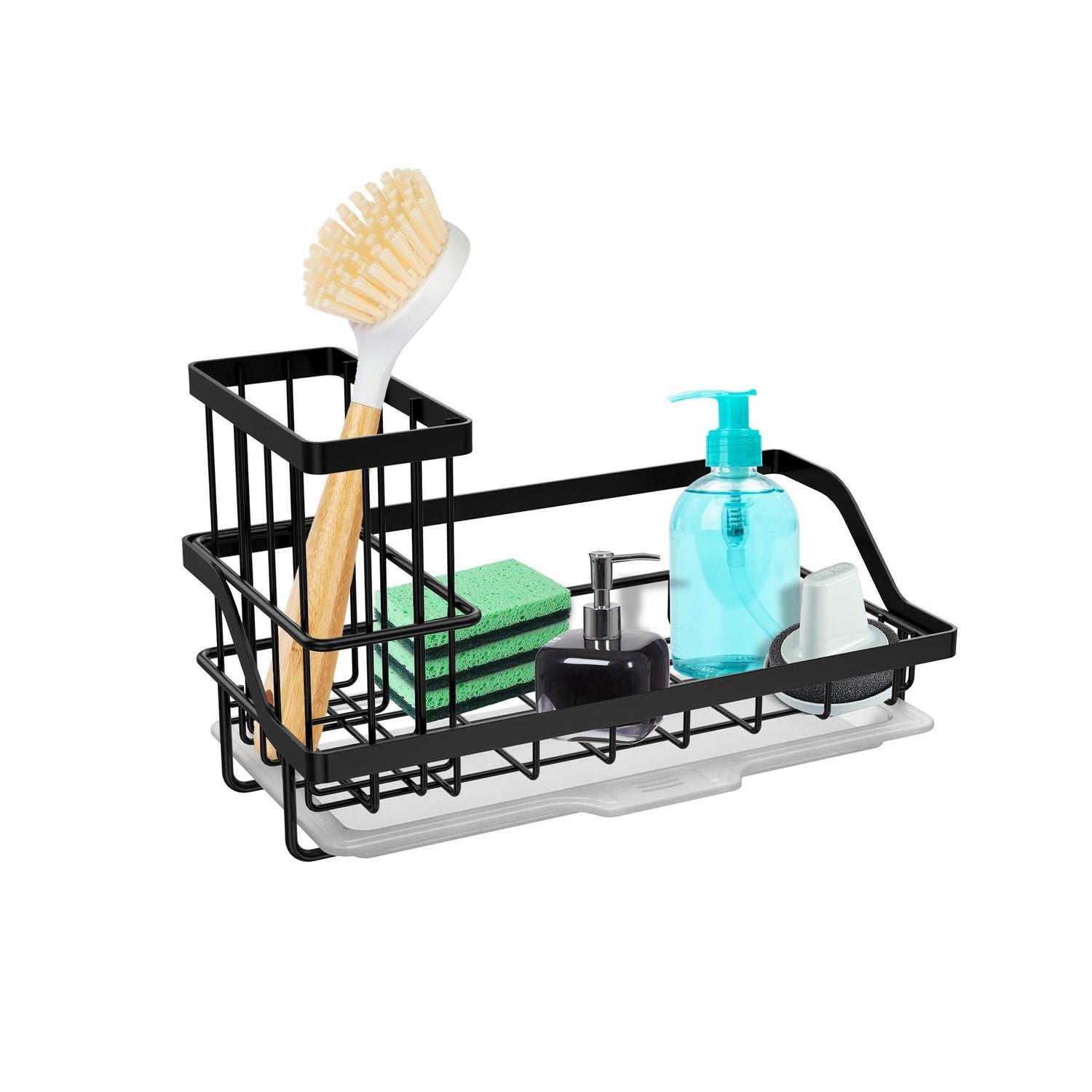 Stainless Steel Kitchen Sink Drain Rack Multi Functional Faucet Holder & Sponge Shelf, Black