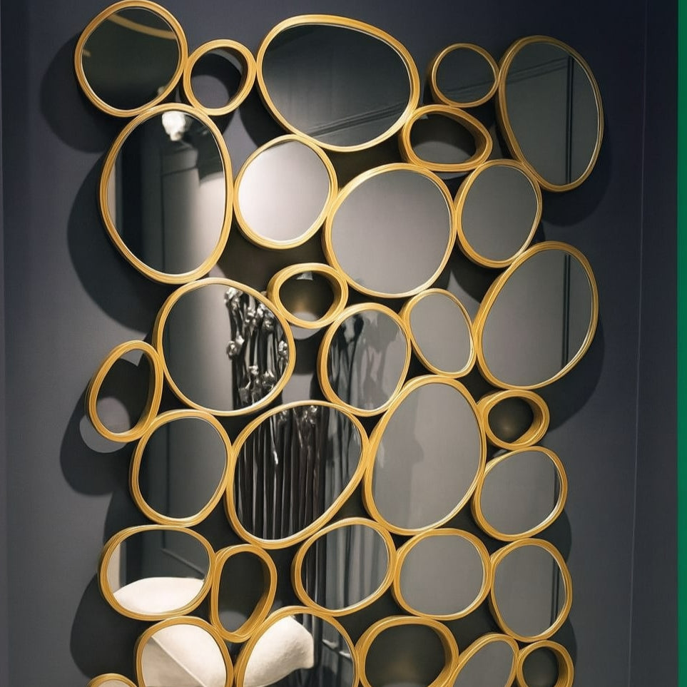 Make a bold decorative statement with this 16 circles mirror. Featuring a unique geometric design and elegant frame options, it adds depth and modern flair to any room.