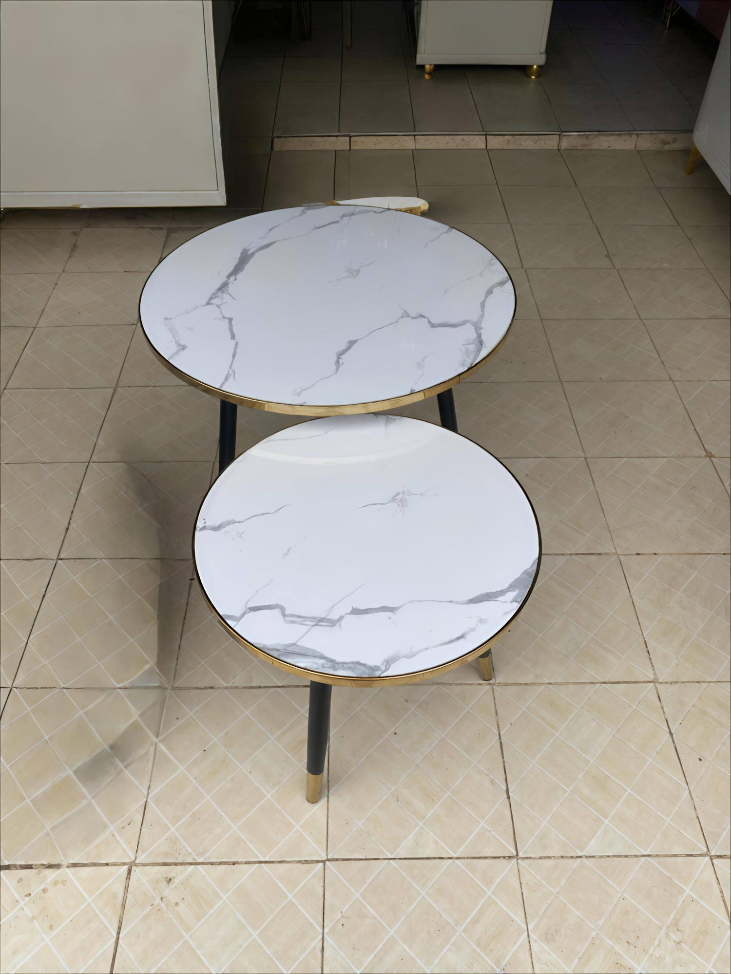 Elevate your living space with this luxurious 2-piece round coffee table set featuring a sleek marble-look top and stunning gold trim. Perfect for modern interiors, this duo brings a blend of elegance, function, and minimalist flair.
