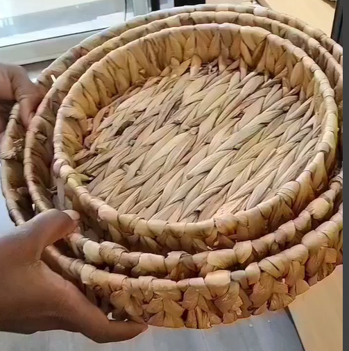 Add natural charm to your home with this set of 3 decorative handmade wicker trays. Beautifully crafted and versatile, they’re perfect for serving, organizing, or styling your living space. Designed without handles for a clean, minimalist look.