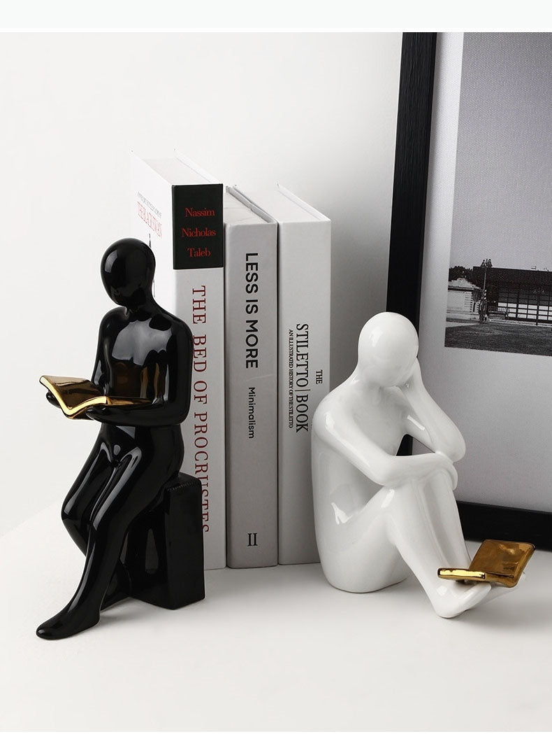 Ceramic Bookends Reader Shape Sculptures – Decorative Book Holder Set