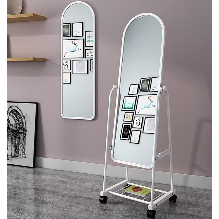 The Dressing Mirror with Wheels combines elegance and functionality in a modern, full-length design. Crafted with a high-quality glass mirror and a sturdy metal or plastic frame, this mobile mirror offers convenience and flexibility, making it ideal for various settings.