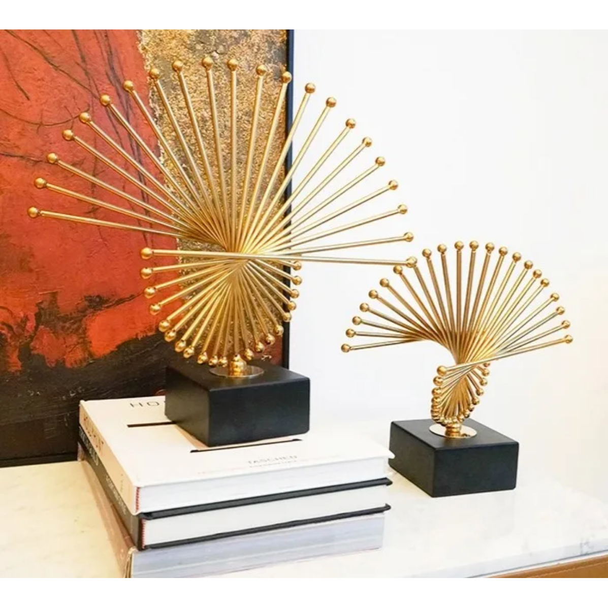 Elevate your office or living room decor with this exquisite metal abstract spiked sculpture. Representing leadership and prosperity, this modern art piece is a perfect blend of elegance and symbolism. Its unique design enhances the flow of positive energy, making it a statement addition to any professional or personal space.