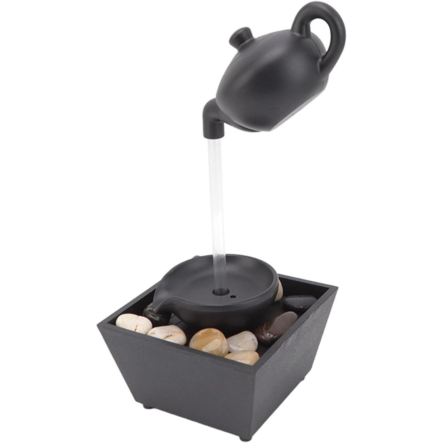 Floating Teapot Waterfall Water Fountain Ornament with LED Lights | USB & Battery Powered | Living Room, Office | Study Room Decors