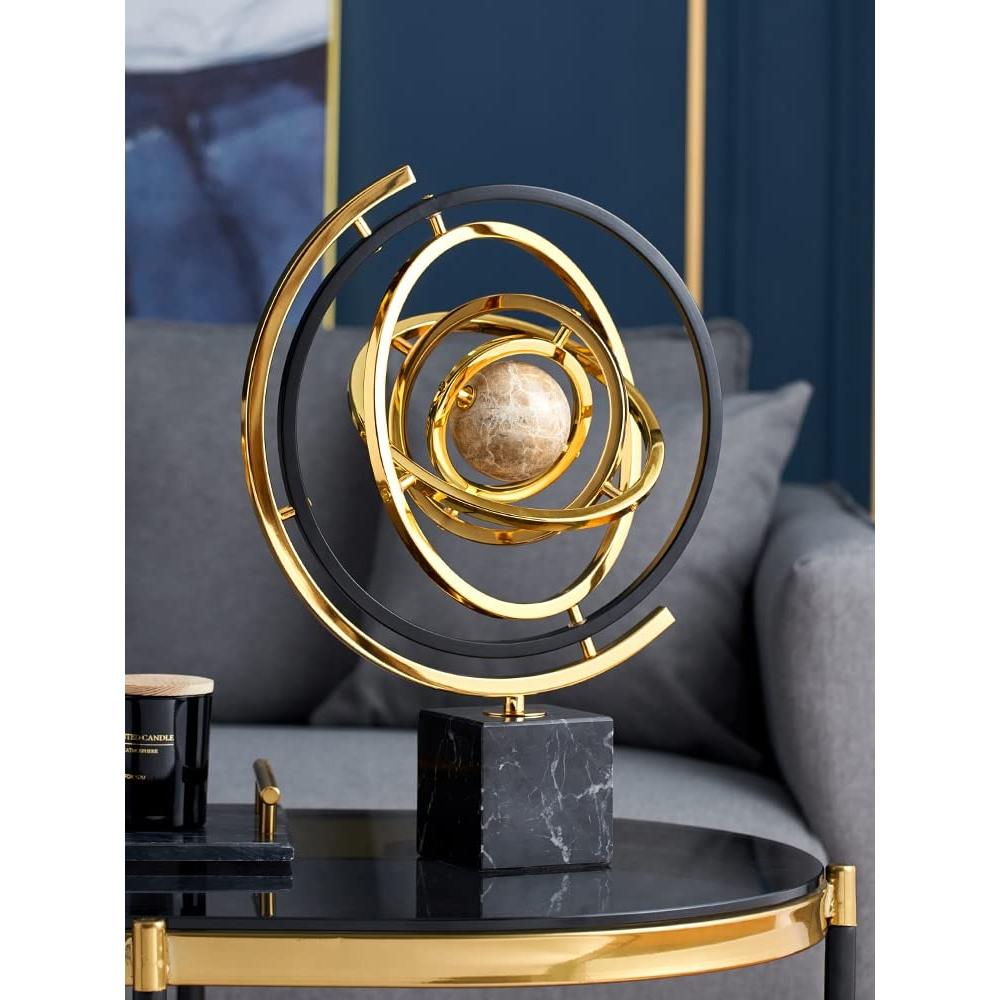 Elevate your space with this luxurious Gold Round Decor, an elegant combination of metallic and acrylic elements. Featuring concentric circular designs with a central decorative sphere, all mounted on a sleek black square base, this accent piece adds sophistication to any room. Perfect for living rooms, bedrooms, office desks, or as a stylish gift, this modern decor accessory offers a touch of luxury with lasting appeal.