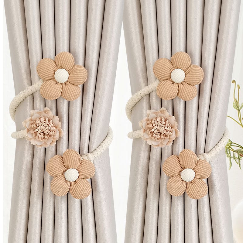 High Quality Polyester Flower Curtain Tieback – Elastic Holder Hook Buckle Clip, Decorative Home Accessory - Beige is backordered and will ship as soon as it is back in stock.