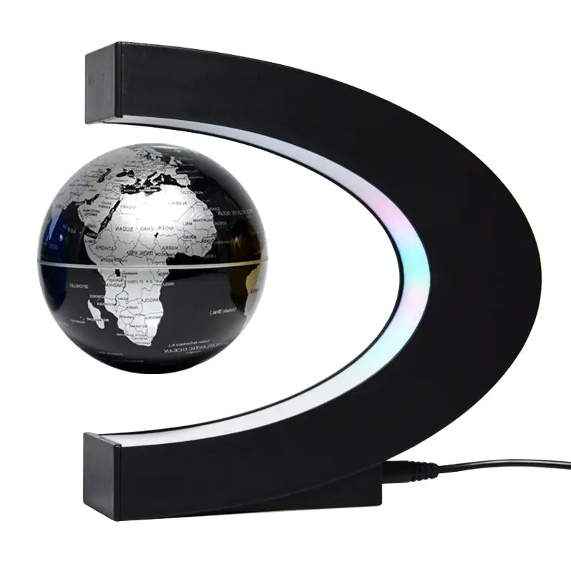 Discover a blend of futuristic design and practical functionality with this LED Light Table Lamp featuring an Antigravity Floating Global World Map. Using magnetic levitation technology, this mesmerizing floating globe is suspended in mid-air, gently rotating and illuminated by vibrant LED lights. Perfect as a modern home décor piece, electronic gadget, or unique gift, this levitating globe will add a touch of wonder to any space.