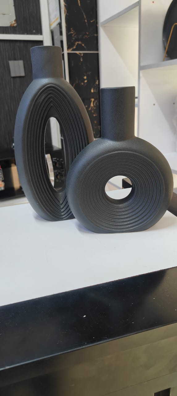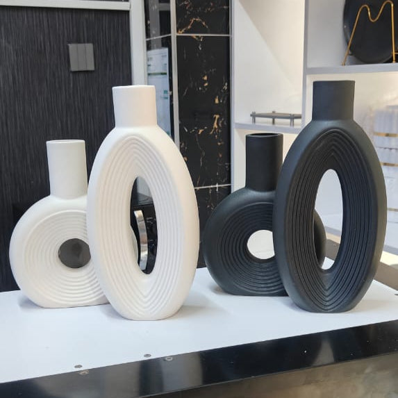Elevate your interior décor with this 2-piece decorative vase set in sleek black and white. Perfect for modern, minimalist, or Scandinavian-inspired spaces, these vases make a stylish statement on consoles, shelves, or tabletops.