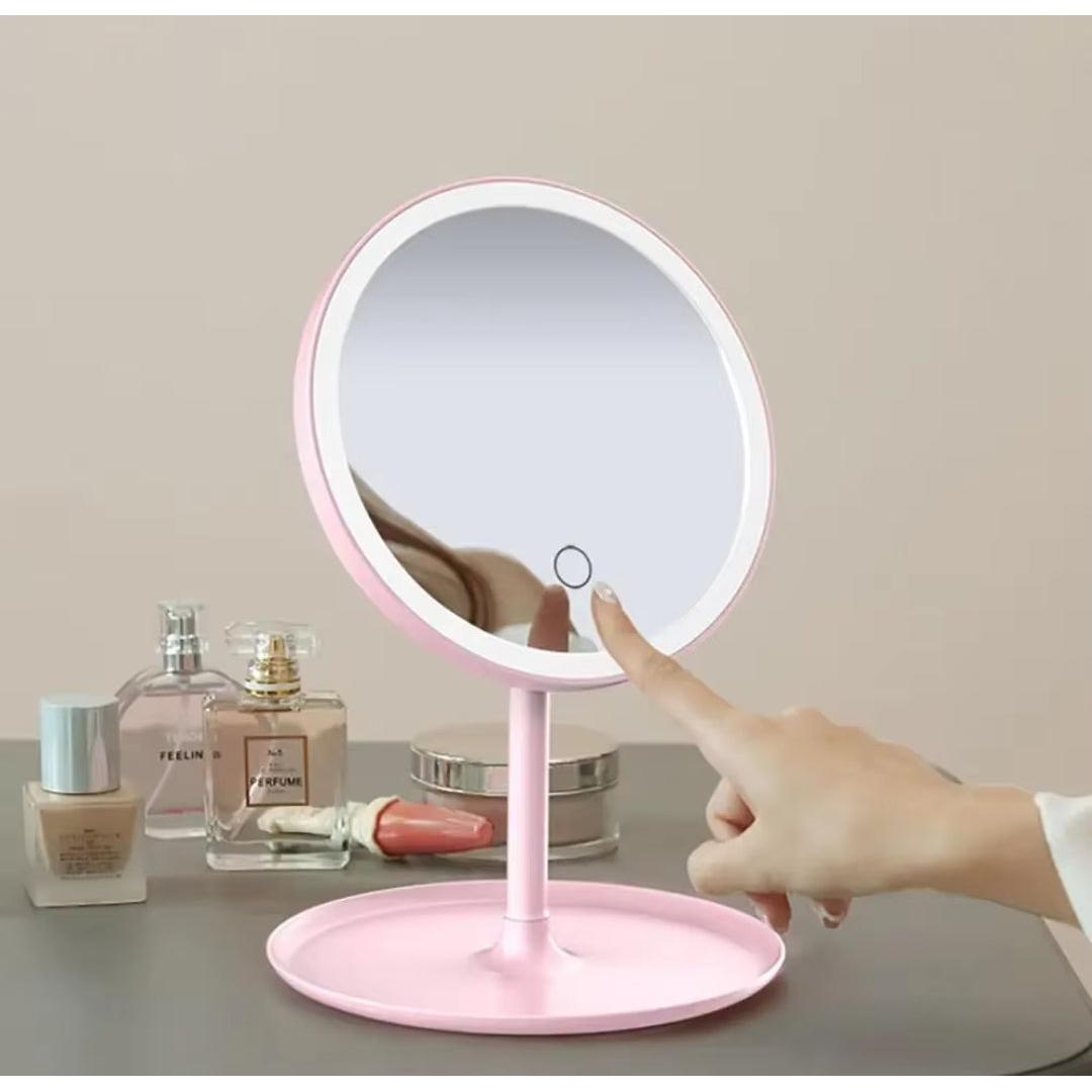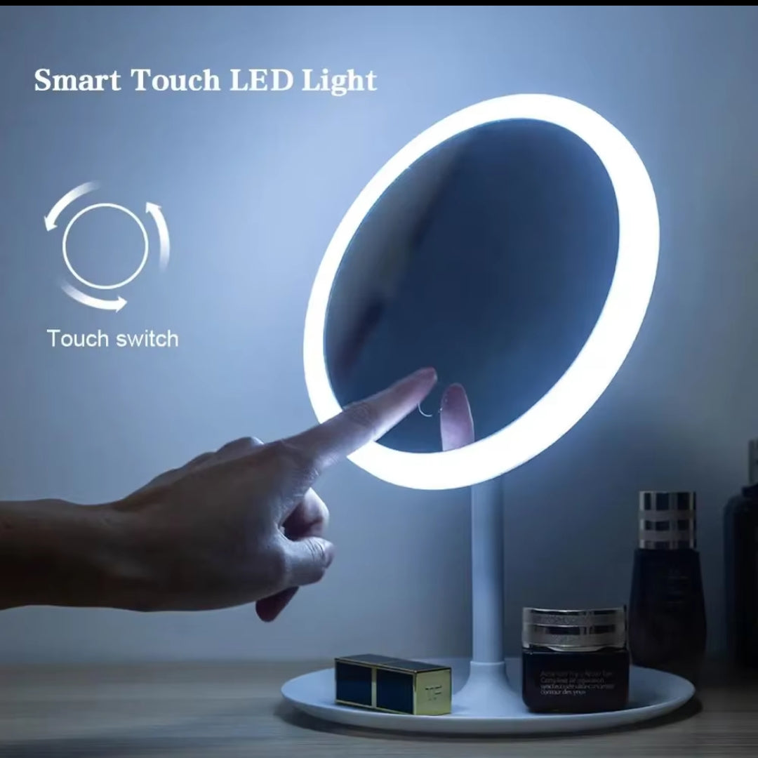 Smart Touch LED Light Portable Mirror Adjustable Brightness & Compact Design