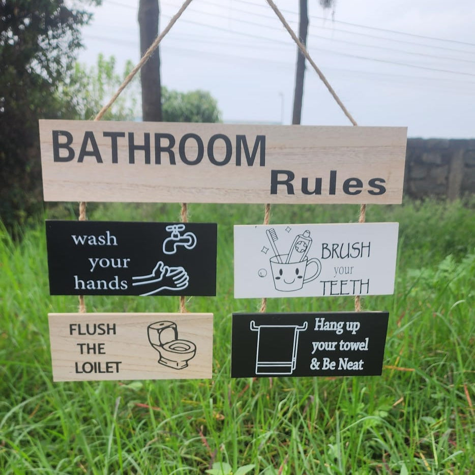Wooden Wall Hanging Bathroom Rules Sign for Home Décor