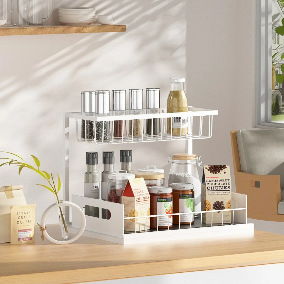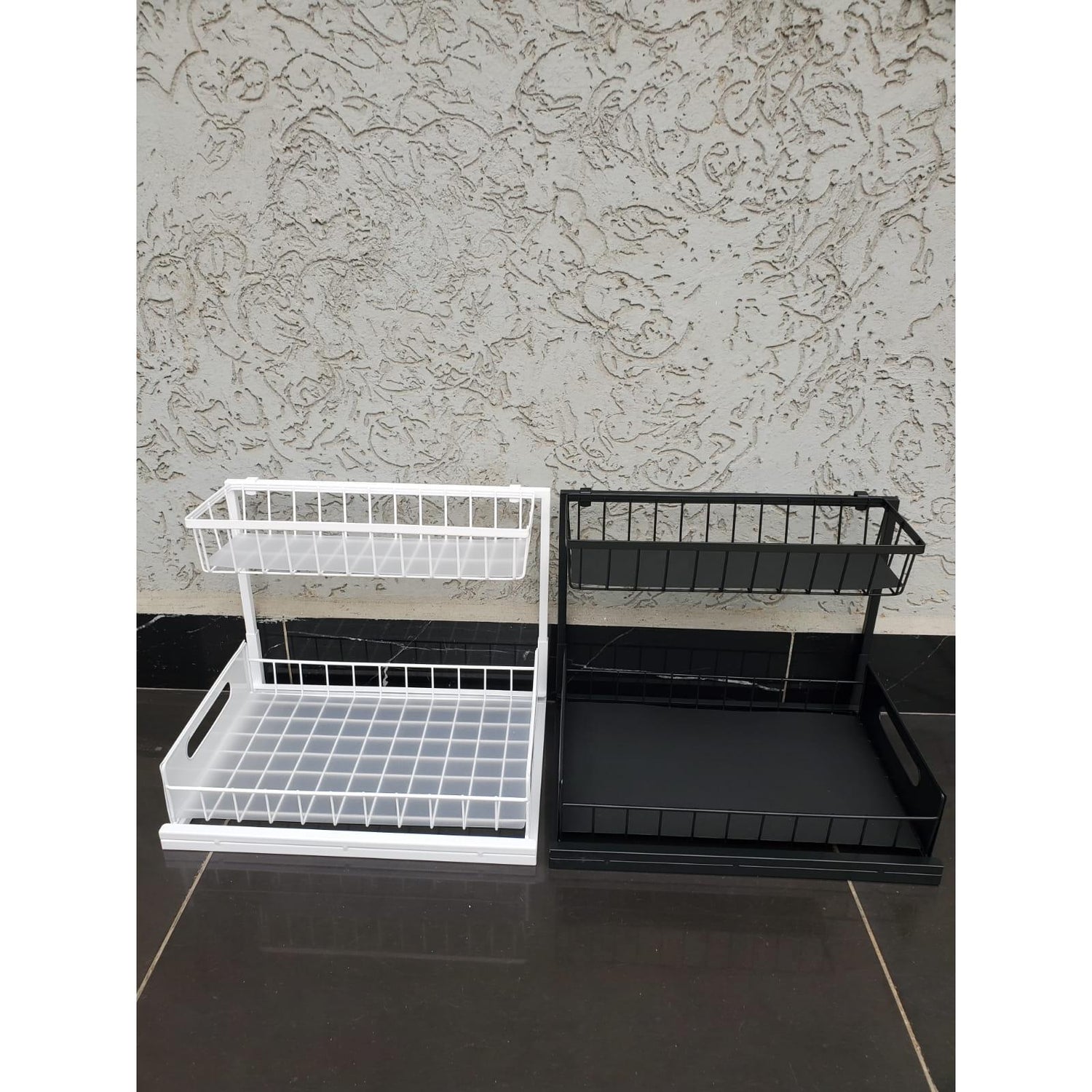 Maximize storage in your home with this 2-tier multipurpose organizer. Built with sturdy metal and designed with slide rails, it provides easy access while keeping your essentials neatly arranged. Available in black and white, it’s a versatile solution for kitchens, bathrooms, and offices.