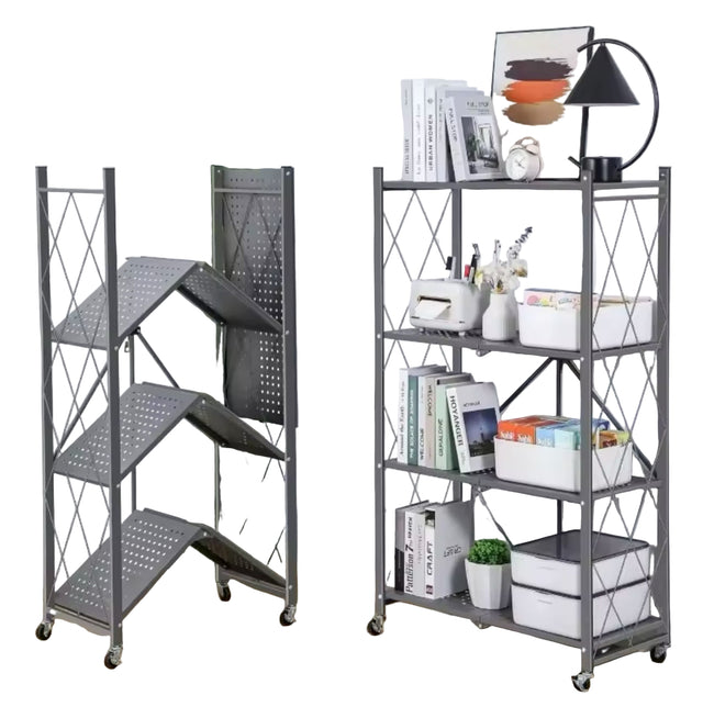 4-Tier Foldable Multipurpose Metal Rack with Shelves and Wheels