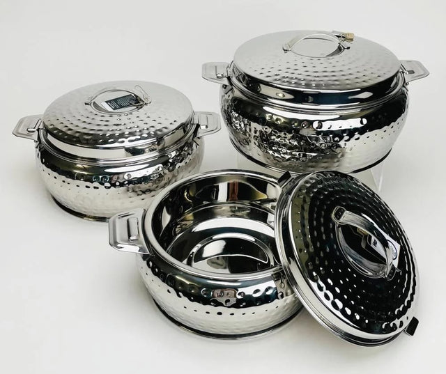 Experience superior food storage and serving with this comprehensive 6-piece big size stainless steel insulated hotpots set. Featuring an impressive range of capacities from 1 liter to 10 liters, this premium collection keeps your meals warm for many hours. Each hotpot is equipped with easy grip sleek handles for comfortable and safe handling, making it perfect for large gatherings, buffets, and family events. The durable stainless steel construction ensures long-lasting performance and elegant presentation.