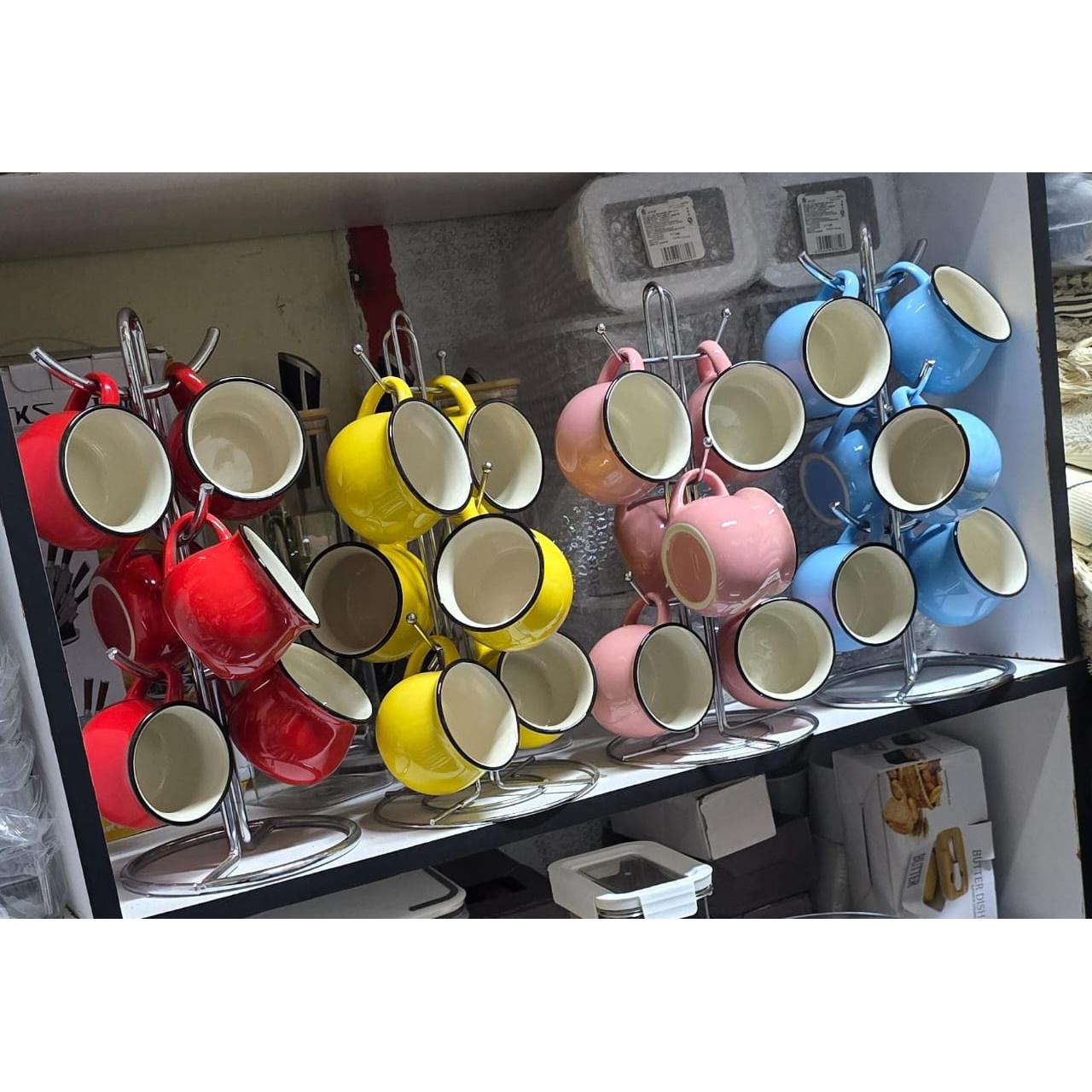 Brighten your kitchen and dining moments with these colorful ceramic pot mugs. Each set includes six 300ml mugs, perfect for enjoying tea, coffee, or hot chocolate while adding a cheerful touch to your table.