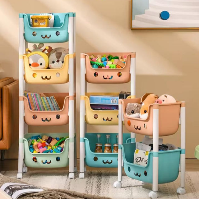 Children’s 4 Tier Toy Storage Rack with Wheels Compact Design