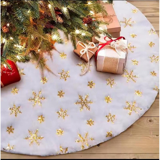 Faux Fur Christmas Tree Skirts – 90cm Gold and Silver Decorative Base Cover