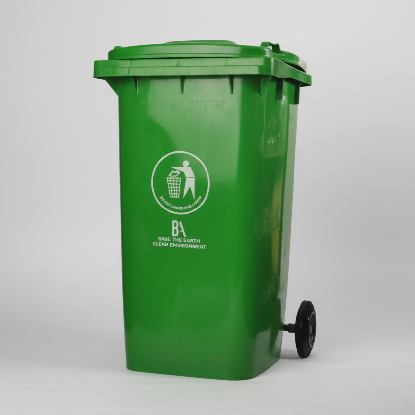 Manage large volumes of waste efficiently with this HM-BA66 BA garbage bin featuring an impressive 120-liter capacity, durable construction, and convenient 2-wheel mobility. This heavy-duty waste bin is perfect for commercial establishments, residential complexes, warehouses, and high-traffic areas, offering easy mobility with two rear wheels for effortless maneuvering. The robust construction in vibrant green ensures long-lasting use and high visibility. The 120L capacity is ideal for commercial and residential applications, while the wheels make it easy to move when full, reducing the frequency of emptying and improving operational efficiency.