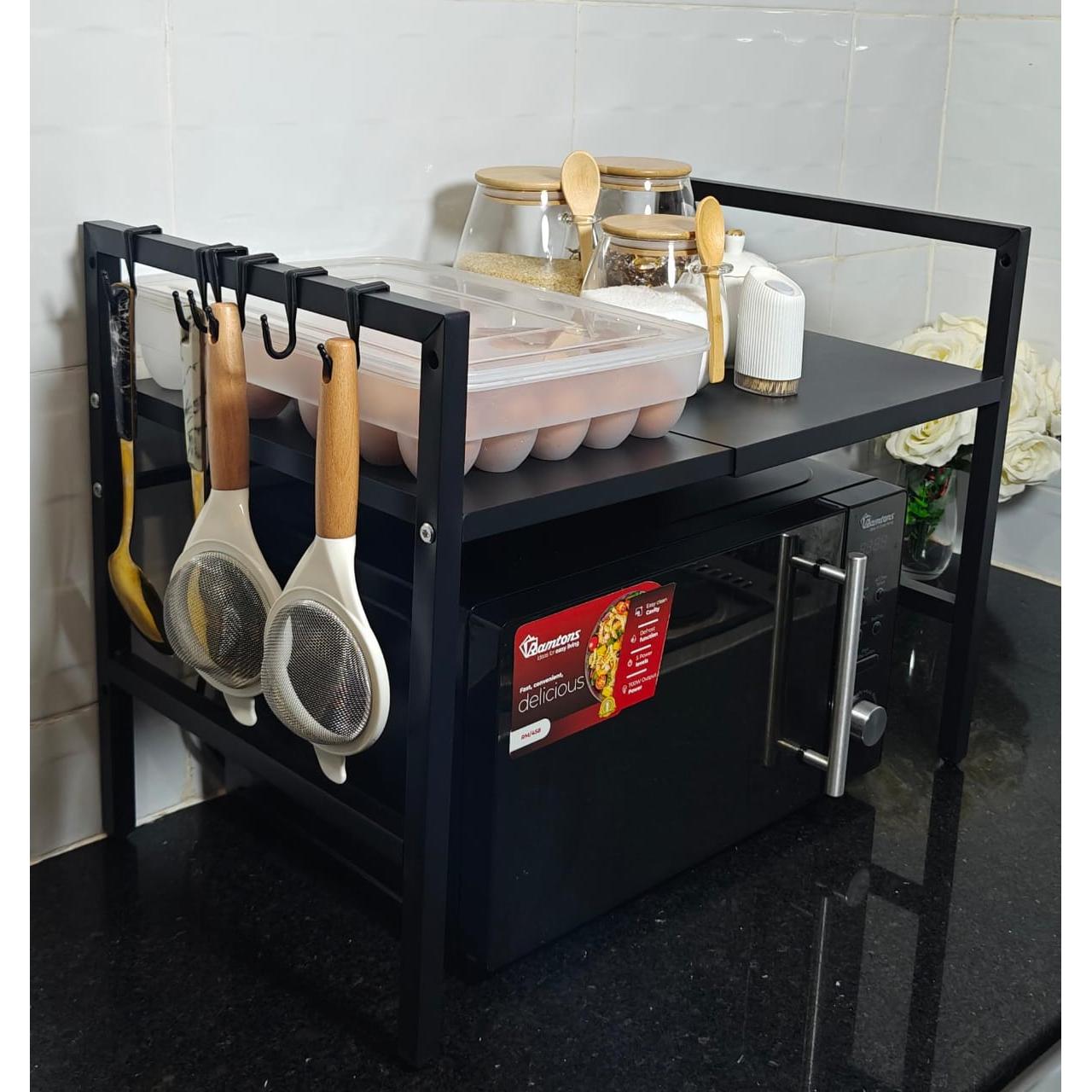 Keep your kitchen organized with this strong and adjustable microwave stand. Built from heavy-duty carbon steel, it is rust-free, scratch-resistant, and designed to maximize countertop space while holding your microwave securely in place.