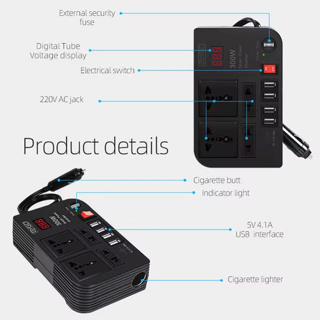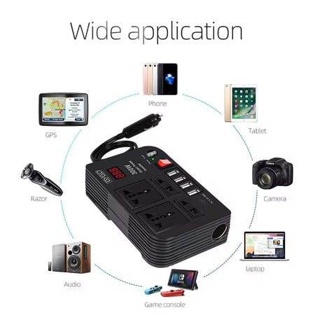 Sale price KSh2,405.00 Regular price KSh2,500.00Unit price /Unavailable 300W Car Power Inverter 12V to 220V Converter with 4 USB Ports & 2 AC Sockets.
