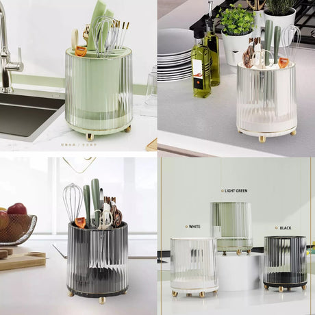 Luxury Multifunctional Rotary Knife and Utensil Storage Rack – 360° Drainage Caddy Organizer