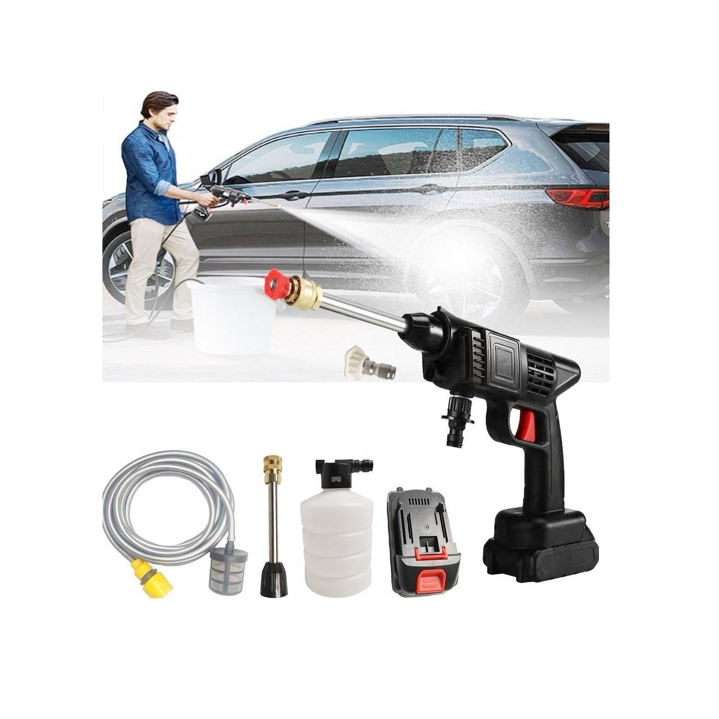 The Cordless Electric Car Pressure Washer is a versatile, powerful cleaning tool designed for ultimate portability and convenience. Equipped with two rechargeable 48V batteries boasting an 8000mAh capacity, this washer provides strong cleaning performance for a variety of tasks. Its durable construction ensures long-lasting use, and the portable design with a carrying case allows you to transport it easily for cleaning in different locations. Perfect for washing cars, outdoor furniture, and more, this cordless pressure washer delivers effective results without the hassle of cables or limited range.