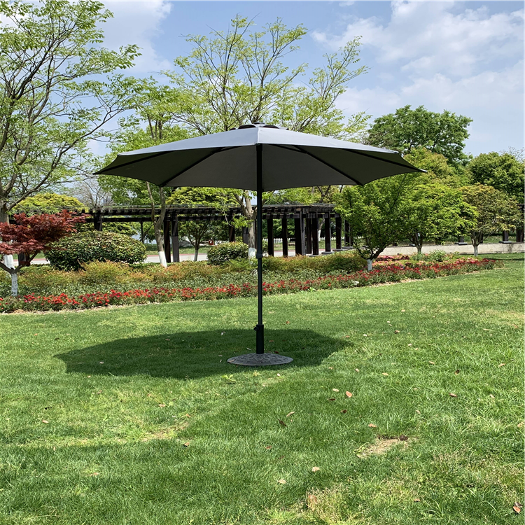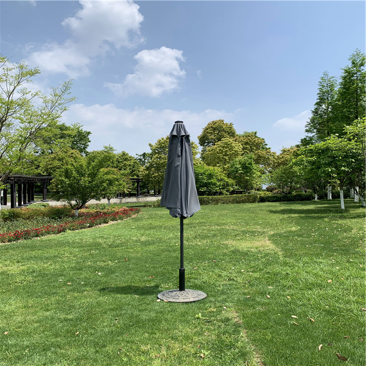 This sleek grey outdoor umbrella comes with a sturdy base, providing a large canopy of shade that comfortably protects 4-6 people from the sun. Perfect for outdoor gatherings, garden patios, and poolside relaxation, this umbrella is a stylish and practical addition to your outdoor space.