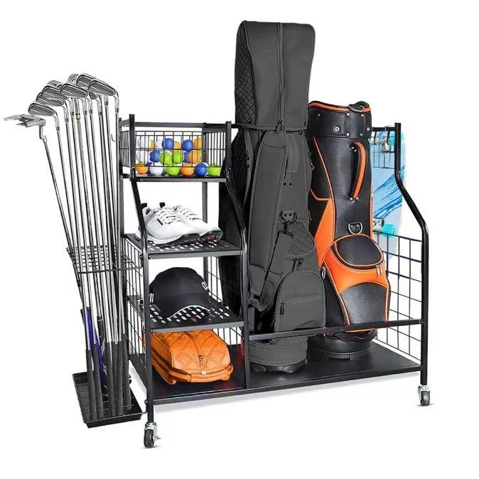 Keep your golf gear organized and ready for the next round with this sleek, durable storage rack.