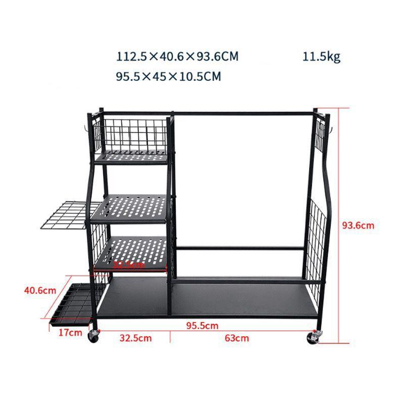 Golf Bag & Equipment Storage Organizer Rack | Black Steel, 95.5x40.6x93.6cm.