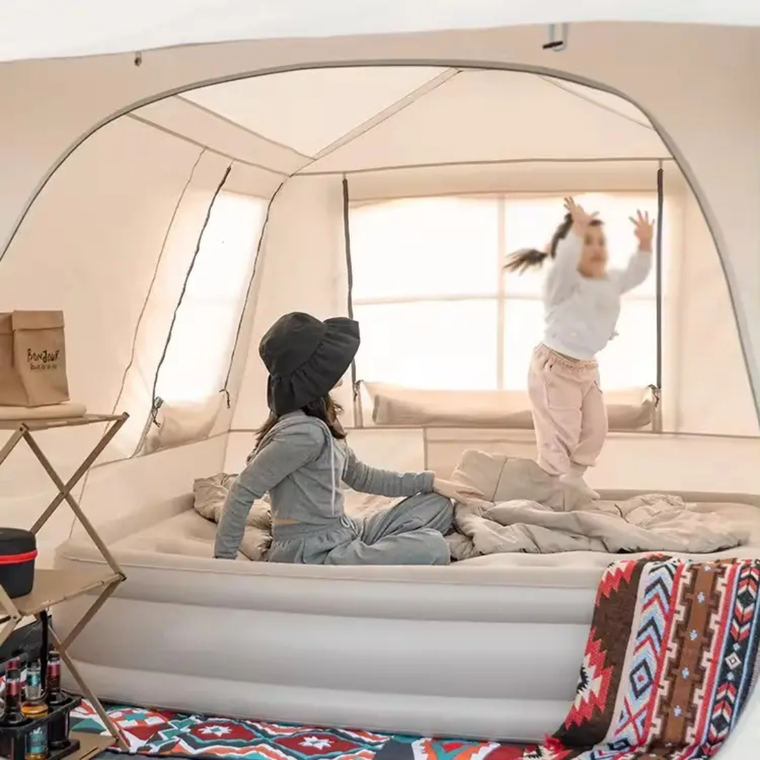 Enjoy a comfortable rest anywhere with this inflatable airbed mattress featuring an automatic built-in pump. Its plush surface and fiber structure offer supportive sleep whether you're at home, camping, or traveling.